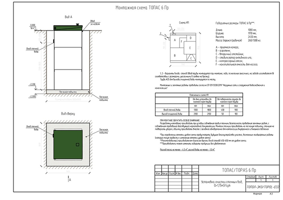 Топас 6 Пр представляет собой полностью укомплектованную автономную канализацию, готовую к установке и дальнейшей эксплуатации.
